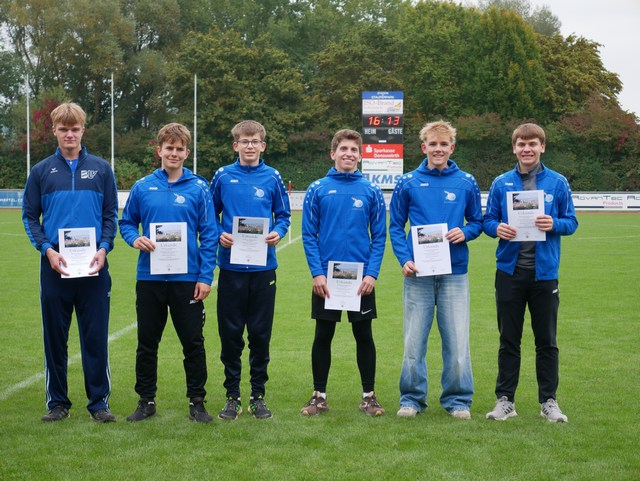Die LG Donau-Ries war noch in der männlichen Jugend U20 vertreten. Hier sorgten bereits ein Ausfall im Vorfeld, sowie zahlreiche verletzungsbedingte Wechsel innerhalb der Disziplinen für eine schwierige Ausgangslage. Dennoch wollte sich keiner vor der Herausforderung drücken und so starteten sie mit nur sieben aktiven Athleten in den Wettkampf. Eine starke Staffelzeit über 4x100Meter von 45,80 Sekunden, mit der Perspektive für hohe Meisterschaften im kommenden Jahr und parallel ein Patzer der direkten Konkurrenz, gaben gleich zu Beginn eine kräftige Ladung Selbstbewusstsein. Ein Ausrufezeichen von Jonas Schöninger vom TSV Rain über 100m mit 11,68 Sekunden und weitere gute Leistungen im 400m-Lauf von Jakob Miehling und Julius Mayr konnten aber den immer wiederkehrenden Teilsiegen der Konkurrenz in den anderen Disziplinen nur bedingt Punktetechnisch entgegenwirken. So kam es schließlich dazu, dass der TSV Nieder- und Hohenraunau das Heimteam nach der Staffel, dem Weitsprung, den 100m und 400m, dem Kugelstoß und dem Hochsprung überholte und sich selbst an die Spitze setzte. Leider konnten sowohl Fabian Lechner, Jonathan Federle und Jakob Schuster über 800m, als auch Julius Mayr und Moritz Roßmann im Diskuswurf diese Platzierung nicht mehr ändern. Letztendlich konnte das Team trotzdem zufrieden sein und mit einem weiteren Vizetitel im Gepäck, die Augen auf nächste Saison richten.