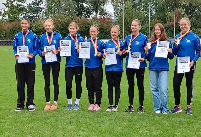 Während die Männer dieses Jahr auch aufgrund einiger verletzter Teammitglieder auf einen Start verzichteten und den ganzen Tag als Kampfrichter im Einsatz waren, stellte sich das Frauenteam der LG Donau-Ries dem Wettkampf. Teilweise war dies wie immer ein Spagat, da viele der Athletinnen zusätzlich noch als Trainerin oder Betreuerin der Jugendteams, oder als Auf- und Abbauhelferin im Einsatz waren. Mit einer gemischten Besetzung aus Rainer, Mönchsdegginger und Donauwörther Athletinnen, startete das Team in der früh mit den 100m Läufen in den Wettkampf. Mit guten Zeiten von Sarah Menge, Stefanie Stöckle. sowie einer tollen 4x100m Staffel die durch Mia Bergmiller und Jana van Noord komplettiert wurde, starteten die Frauen super in den Tag. Starke Einzelleistungen der Mönchsdegginger Hochspringerinnen, sowie der Rainer Wurfspezialistinnen Im Diskuswurf und Kugelstoß hielten die LG Donau-Ries immer im Rennen um die Podestplätze. Ein packendes Finale im Weitsprung und den parallel laufenden 800m Zeitläufen sollten schließlich den Wettkampf für alle entscheiden. Wie schon zuvor im Hochsprung sorgten die Springerinnen Ella Wiedemann und Jessica Rauter mit Sprüngen auf 4,34 Meter und 4,26 Meter für weitere Punkte. Die letzten Wertungen kamen schließlich von den 800 Metern, wo das Quartett vom VSC Donauwörth mit Tabea Stumpf, Laura Popp, Sarah Menge und Stefanie Stöckle dann nichts mehr anbrennen ließ. Mit 6479 Punkten landeten die Frauen schließlich auf dem dritten Platz im schwäbischen Ranking. Dennoch: Mit nur 94 Punkten Rückstand auf die Gewinnerinnen von der LG Aichach-Rehling und knapp 150Punkte Abstand zum vierten Platz kann man jetzt schon gespannt sein auf das nächste Jahr!